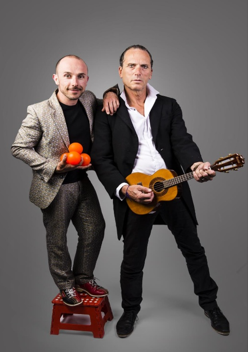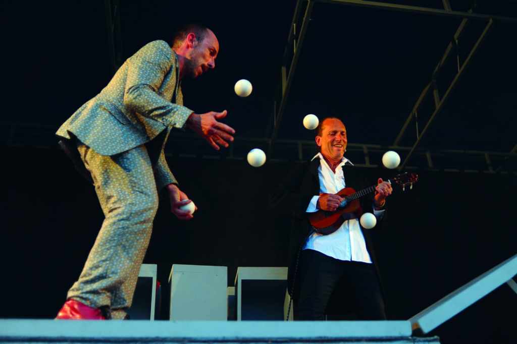 Un musicien, un jongleur… deux allumés du son, de la zique, du show, et de la jongle! Les menottes véloces et les savates agiles, ils partent en transe au son des balles tambours et de la mini guitare chantée.